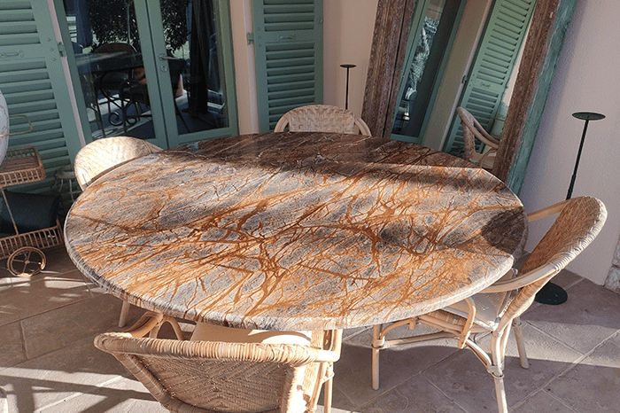 Gracias a la resistencia natural de la piedra, estas mesas no se deforman con el calor, la lluvia o el sol, y requieren muy poco mantenimiento. Además, puedes elegir entre distintos acabados, colores, formas y tamaños para que se integren perfectamente en el entorno.